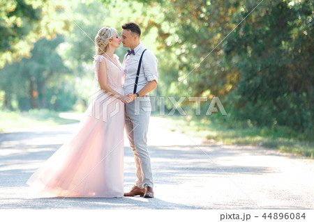 wedding couple on the nature in summer day.