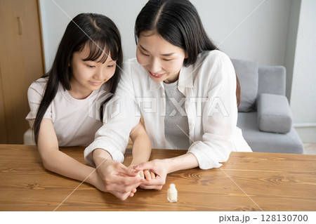 ネイル,マニキュア,ネイルオイルをする子供,女の子,小学生,中学生