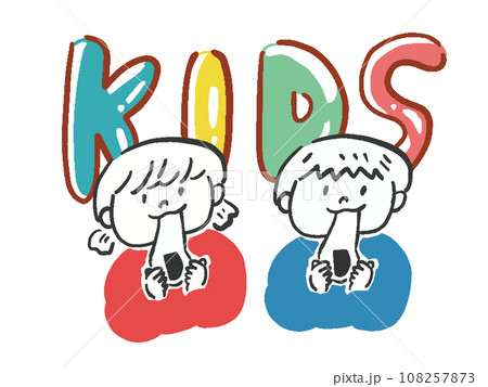 KIDS マスク着用の男の子と女の子の文字イラスト
