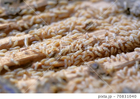 木材を食い散らかすシロアリ(ヤマトシロアリ)