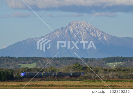 利尻山をバックに走るキハ261系の特急列車