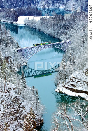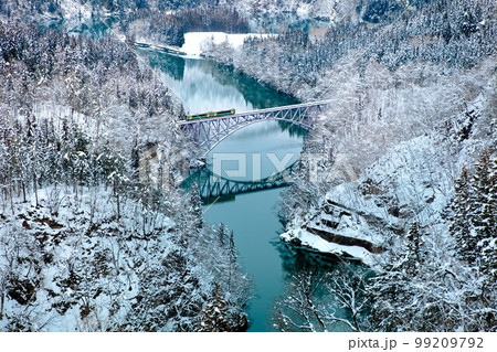 只見線の風景 第一只見川橋梁を渡る列車 福島県三島町