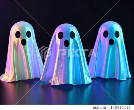 ピンク色の泡の海に浮かぶ可愛いキャラクターとモンスター。ハロウィンのためのコミカルで楽しいイメージ。
