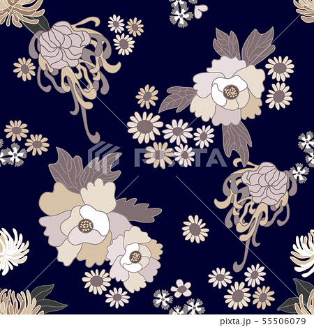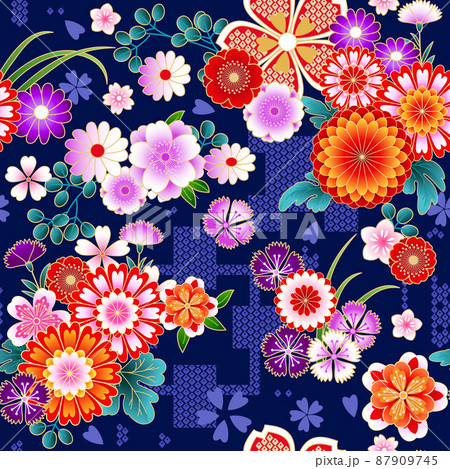 Japanese spring floral background in traditional kimono style