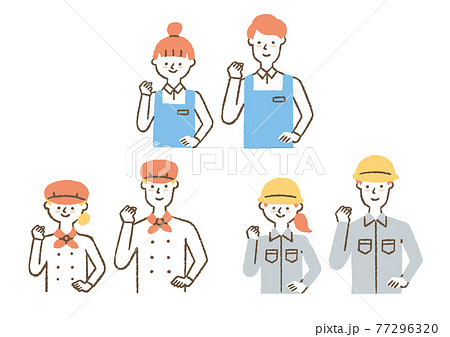 着せ替え可能な、シンプルな線画で描かれた、飲食業の人物アイコンセット