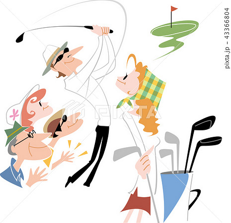 ゴルフをしている男性【スポーツ・水分補給・スイング・ゴルフカート・右利き・左利き】イラスト