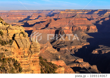 朝暘に照らされるグランドキャニオン国立公園(サウスリム)南壁 マーサーポイント アメリカ アリゾナ州