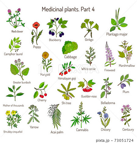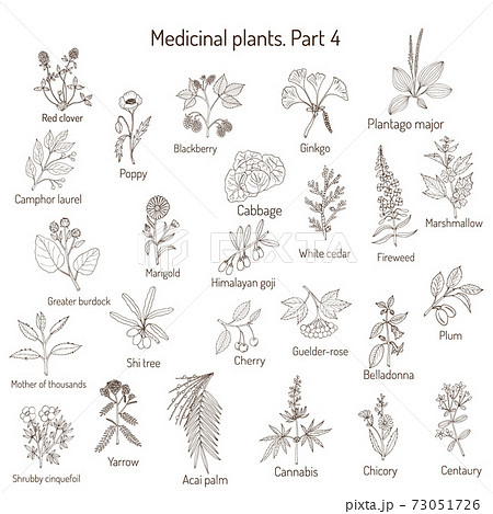 Vintage collection of hand drawn medical herbs and plants. Botanical set