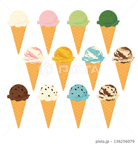 いろいろなフレーバーのアイスクリームのベクターイラストセット