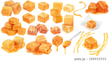 さまざまなキャラメルの素材セット 水彩画イラスト
