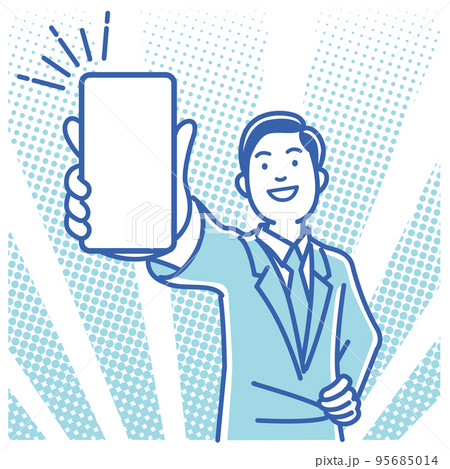 スマートフォンを手に持ち説明するカジュアルな若い男性