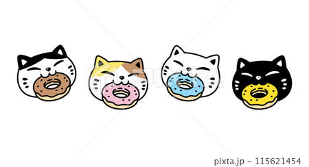 cat vector eating donut kitten calico neko bakery food bake icon pet cartoon character munchkin illustration symbol isolated