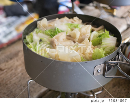 山やキャンプで調理するアウトドアごはん・山ごはん【ワンタン野菜鍋】