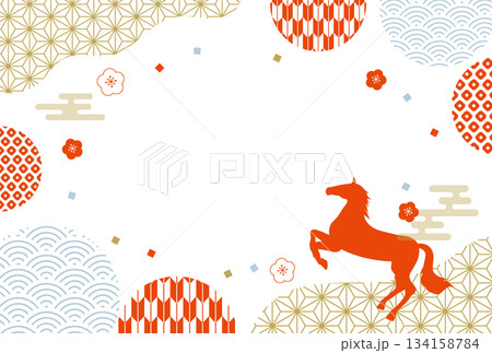 2026年 正月 午年の年賀状 和柄 フレーム 横
