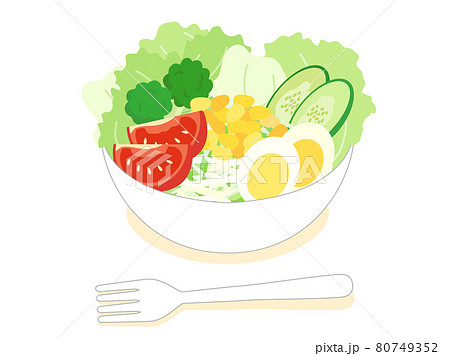 野菜たっぷりのサラダとフォークのイラスト