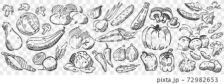 Hand drawn vegetables doodle set