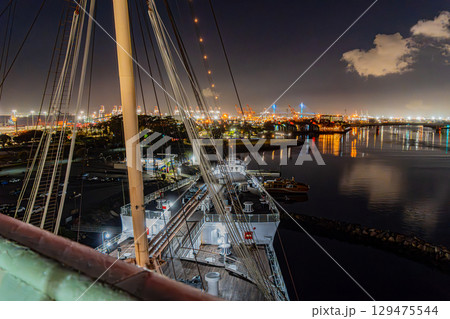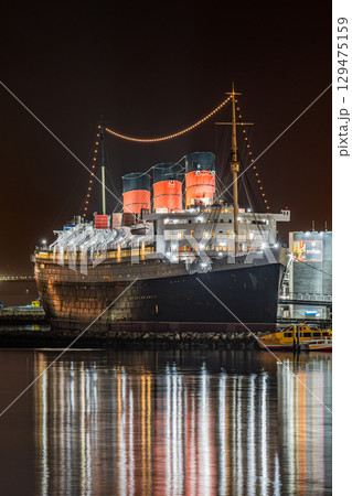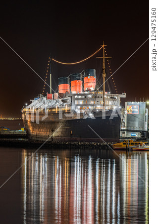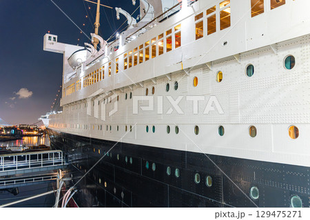 アメリカ 星空と記念艦のキュナード社客船クイーンメリー号 ロサンゼルス ロングビーチ