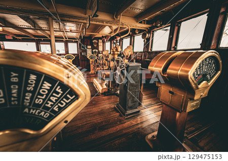 アメリカ 記念艦のキュナード社客船クイーンメリー号の操舵室 ロサンゼルス ロングビーチ