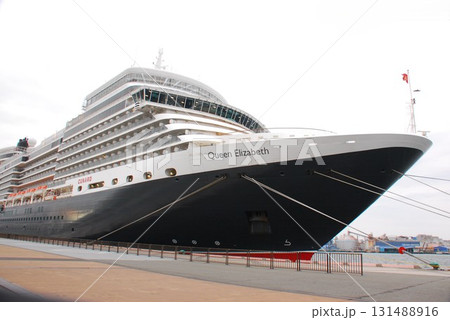 神戸港に停泊するクイーン・エリザベス号