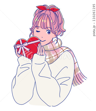 後ろ手にチョコレートを持つレトロポップな女子生徒