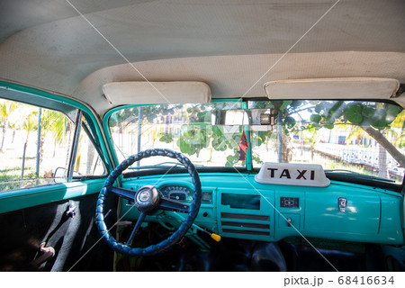 キューバ トリニダーから近いアンコンビーチで待つタクシー