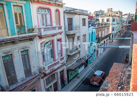 キューバ ハバナの裏通りを俯瞰で眺める