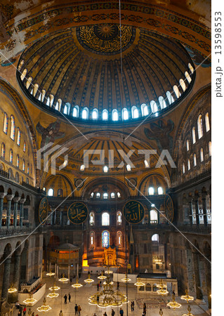 The beautiful decorated cupola of Hagia Sophia mosque, Istanbul,