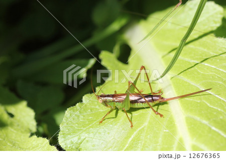 草むらにいるオスのキリギリス