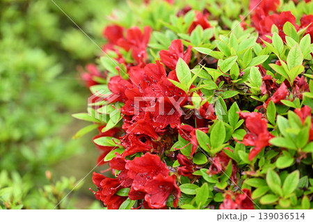 満開の赤いツツジ