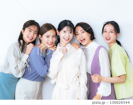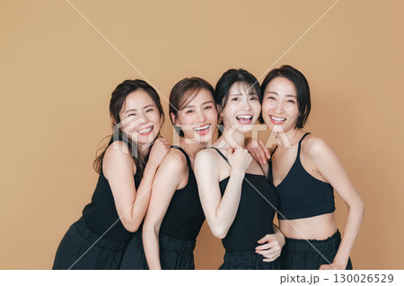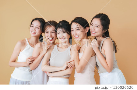 ナチュラルカラーの衣装を着たミドル女性グループの美容イメージ スキンケア コスメ