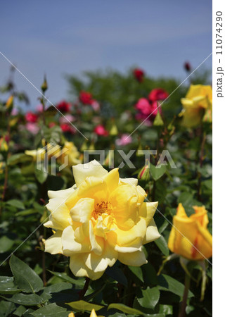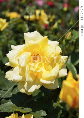 谷津バラ園の鮮やかな黄金色のバラの花・金閣