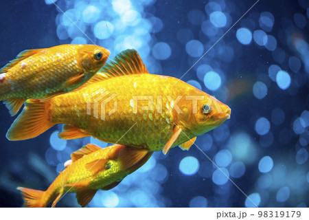 Goldfish swimming in the water. Goldfish in the aquarium.