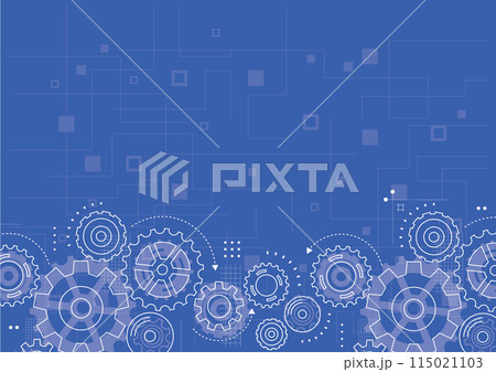 Gear wheel technology pattern on blue gradient background. Hand drawn vector.