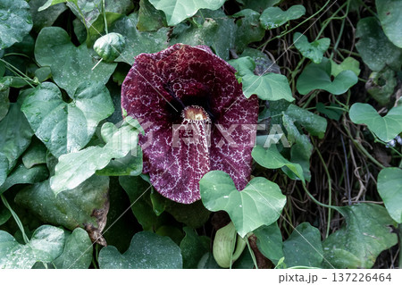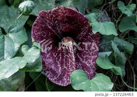 赤茶の花 熱帯植物(3月)アリストロギガンテア・ウマノスズクサ科01