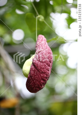 網目模様の巨大な花の蕾をつけたアリストロキア・ギガンテア【珍奇植物】
