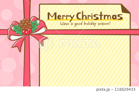クリスマスプレゼントボックスの背景フレーム素材_シンプルなリボンとプレゼントの箱のイラスト