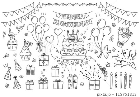 誕生日にまつわる線画のイラストセット