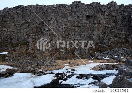 北欧アイスランドの冬期シンクヴェトリル公園にあるゴールデンサークルのアルマンナギャゥ(地球の割れ目)
