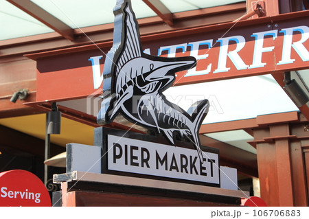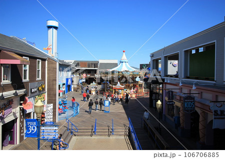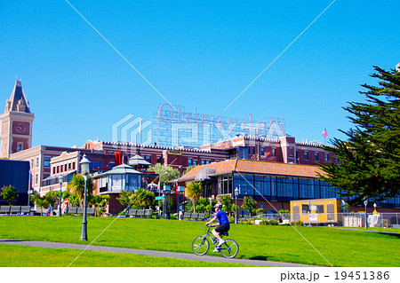 サンフランシスコの人気スポット、ハイド ストリート ピアからの風景。ギラデリの大きな看板が見える