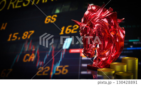 The Red Horse Bust and coins for Business concept 3d Rendering.
