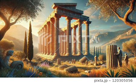 Dramatic Portrayal of a Historical Figure in Ancient Greek Setting During Daylight