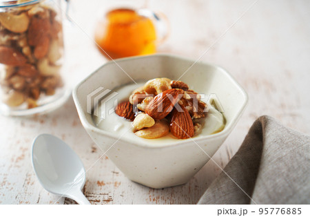 ミックスナッツとヨーグルト 蜂蜜をかけて