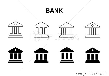 銀行や庁舎の建物のアイコンセット