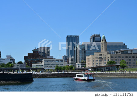 日本の横浜都市景観 横浜税関・クイーンの塔やあかいくつ、神奈川県警察などを望む