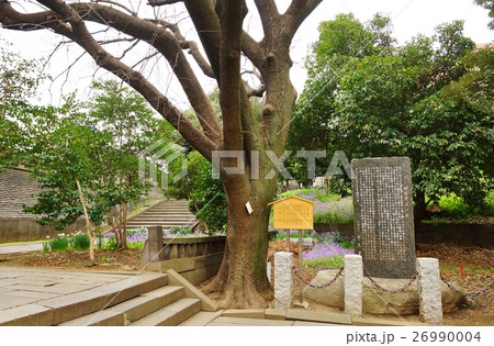 東京史跡案内・湯島聖堂内の楷樹と由来書立て札・横位置