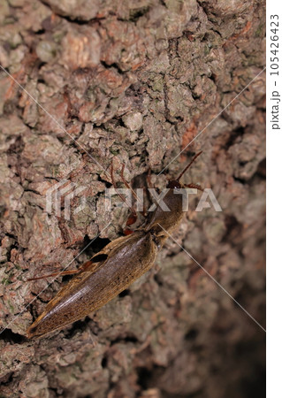 生き物 昆虫 オオクシヒゲコメツキ、メスです。七月の雑木林。シラカシの幹にいました