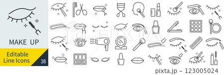 メイクアップに関する線画アイコンセット