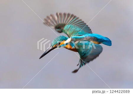埼玉県川越市池辺 川越水上公園 修景池(ボート池)で獲物の小魚を狙ってダイブするカワセミ