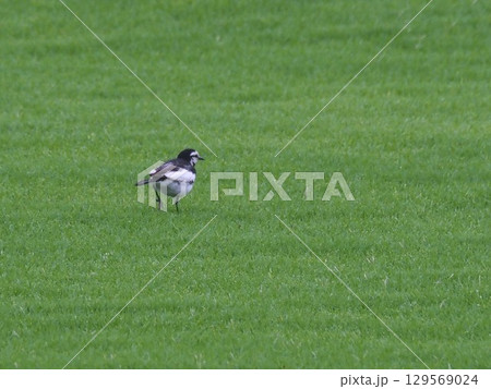 夏の荒川運動公園で採餌するハクセキレイ