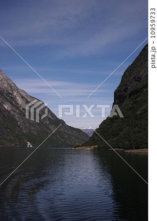 ノルウェー フロム~グドヴァンゲン間のソグネフィヨルド・クルーズの観光船から見る雄大な風景。